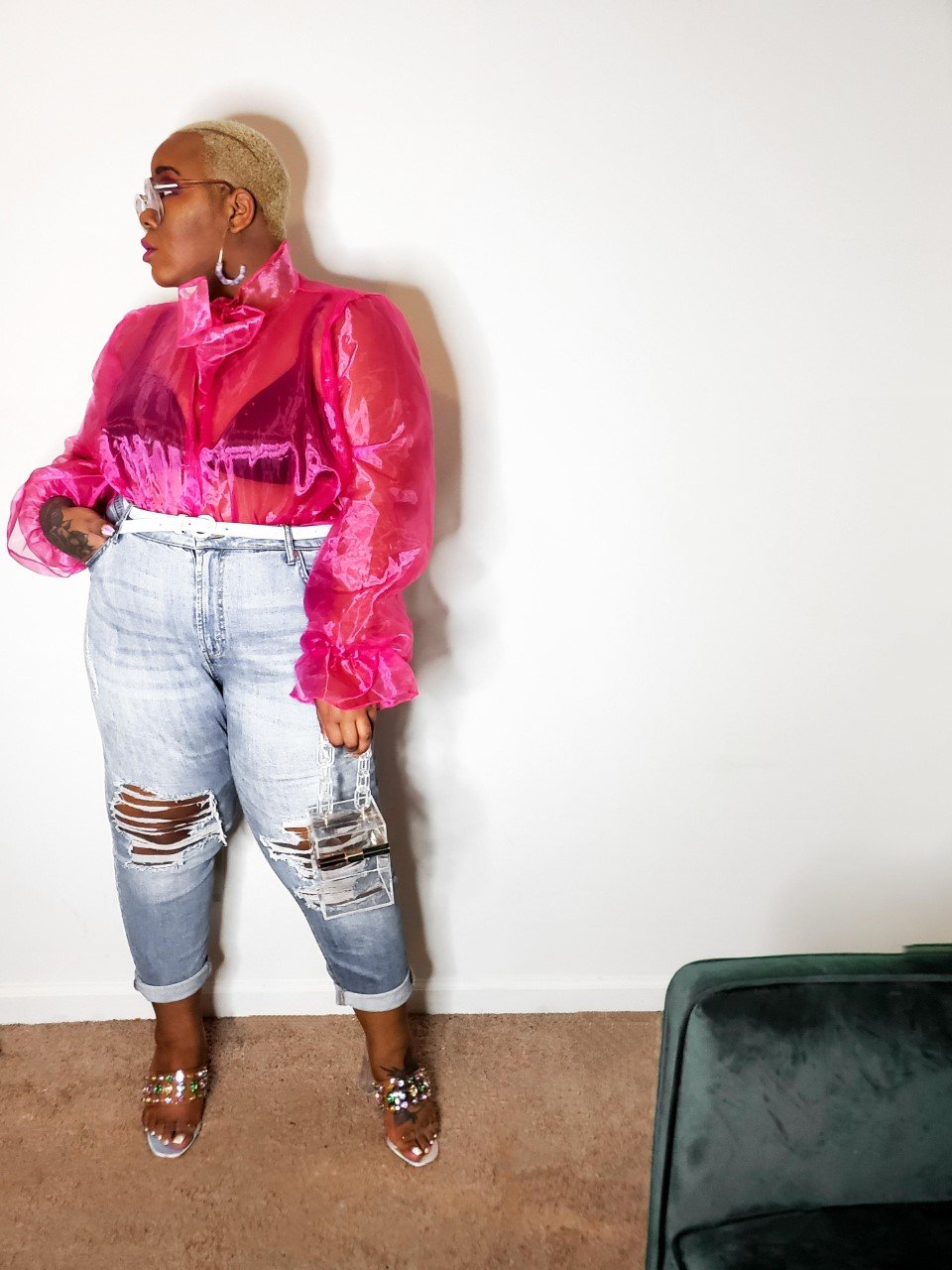 I wanted to go for something flirty, fun, but comfy – because I cooked ALOT! The organza shirt is actually a body suit and very roomy. It’s not like normal bodysuits that tend to ride up your ass, it fits as it should at the bottom and spacious at the top. The high waisted jeans had alot of stretch in them which I love and need, because me and jeans are already an iffy subject (post to come), so these were a must. And of course, a good pair of sandals or mules are a must at any brunch, inside or outside and these gemmed Topshop mules sung to me as soon as I saw them.