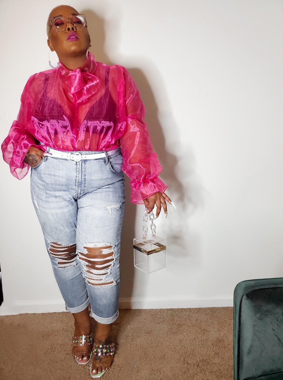 ♡ Top: Pink Plus Organza Tie Bodysuit/Pretty Little Thing: https://www.prettylittlething.us/plus-pink-organza-tie-neck-bodysuit.html