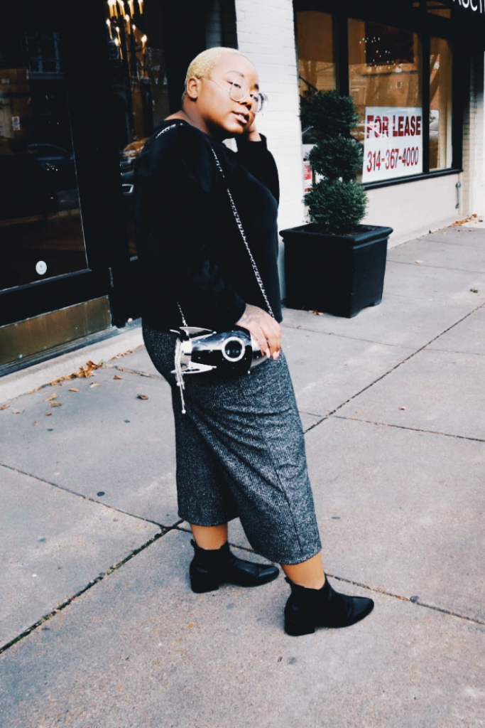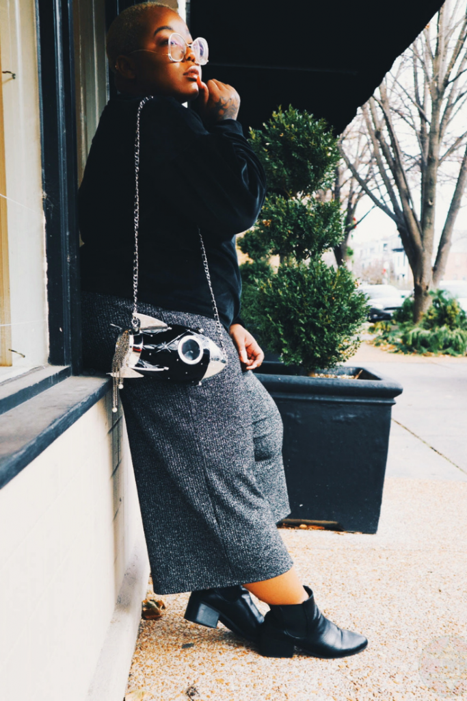 What I love most about rompers are how versatile they are. You can pair them with a blazer, with a jacket, or like I did, with another shirt to create the illusion of pants! Paired with some comfy boots and an avant garde bag, I’m ready to hit the bar, networking event, or date night with the boo thang!